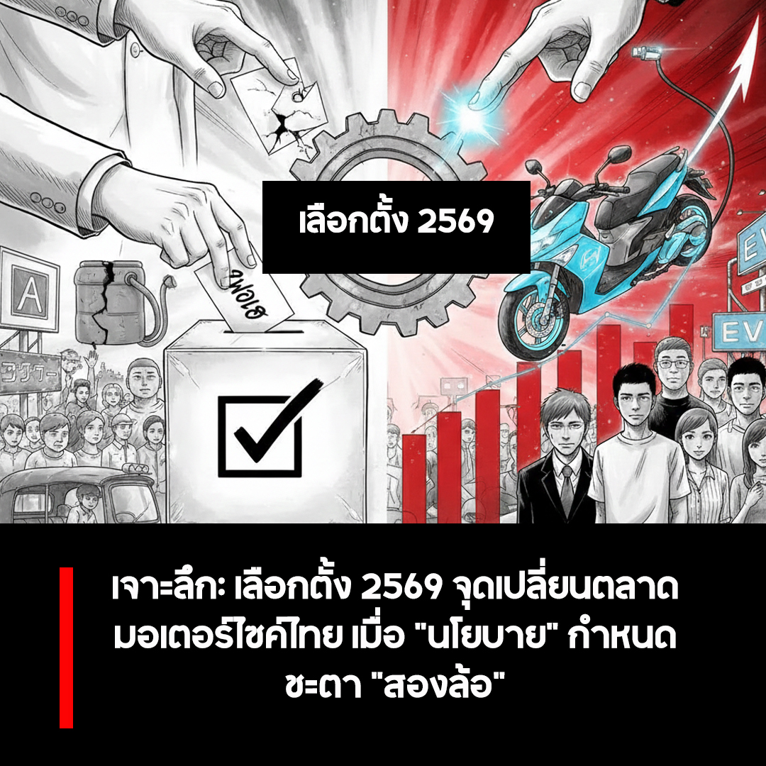 บรรยากาศการเลือกตั้งทั่วไปเมื่อวันที่ 8 กุมภาพันธ์ 2569 ที่ผ่านมา เปรียบเสมือน "พายุลูกใหม่" ที่พัดเข้ามาในอุตสาหกรรมยานยนต์ไทย ในขณะที่ค่ายรถยนต์กำลังฝุ่นตลบกับสงครามราคา EV ตลาดรถจักรยานยนต์กลับเผชิญความเปลี่ยนแปลงที่ลึกซึ้งกว่านั้น เพราะนี่คือยานพาหนะของ "ฐานเสียง" กลุ่มใหญ่ที่สุดของประเทศ