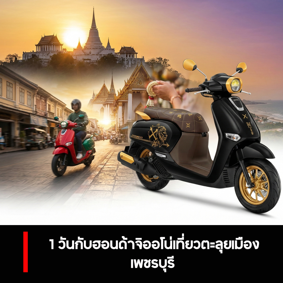 สำหรับคนรักรถสไตล์โมเดิร์นคลาสสิกอย่าง Honda Giorno+ การได้บิดรถทรงสวยๆ เข้าไปแทรกตัวในเมืองเก่าที่มีเสน่ห์อย่าง "เพชรบุรี" คือส่วนผสมที่ลงตัวที่สุด วันนี้เราจะพาน้องจิออกไปตะลุยเมือง 3 วัง สัมผัสทั้งวัฒนธรรม ของกินถิ่นอร่อย และเส้นทางเลียบหาดสุดฟิน ในเวลา 1 วันเต็มๆ