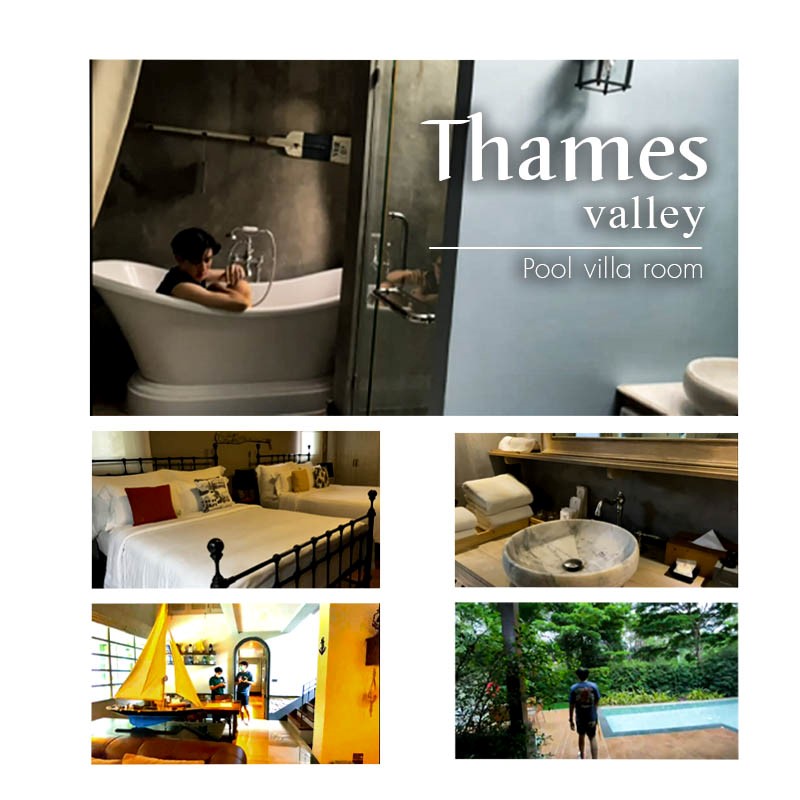 และแล้วเราก็ถึงยังจุดหมายครับ จากร้านอาหารมาประมาณ 20 นาทีที่พักคือแบบ หน้าทางเข้า ว้าวมาก เราพักกันที่ Thame Valley เขาใหญ่ครับที่พักสไตล์หมู่บ้านอังกฤษ แต่ที่ว้าวไปกว่านั้นคือเมื่อไปถึงเรามีพนักงานต้อนรับส่วนตัวด้วย (พี่ๆเค้าเรียกกัน บัตเลอร์ครับ) คือเราขับผ่านขึ้นไปเลยไม่ต้องเช็คอิน เพราะเค้าจองพลูวิวล่า แบบหรูหราหมาเห่าไว้ให้ เมฆนี่ว้าว 3 ว้าวไปเลย บ้านที่เราได้คือ Wisdom 1 อะเข้าไปคือแบบว้าวมากตกแต่งสไตล์ยุโรปมากๆ ห้องโถงเพดานสูงครับ และสามารถเดินทะลุไปสระว่ายน้ำส่วนตัว ที่นี่ของทุกอย่างในบ้านกินฟรีหมด แถมอาหารเช้ามาบริการถึงที่ ถ้านึกไม่ออกว่าตกแต่งประมาณไหน ลองนึกภาพบ้านแม่มดอังกฤษแบบโบราณแต่ของข้างในทันสมัยมากๆ ห้องน้องจะมี 2 ห้องนอนเมฆกับพี่โบ๊ทนอนชั้น 2 ครับซึ่งเห็นวิวสระว่ายน้ำอีกแบบ ดีขนาดไหนดูตามภาพปลากรอบเลยครับ